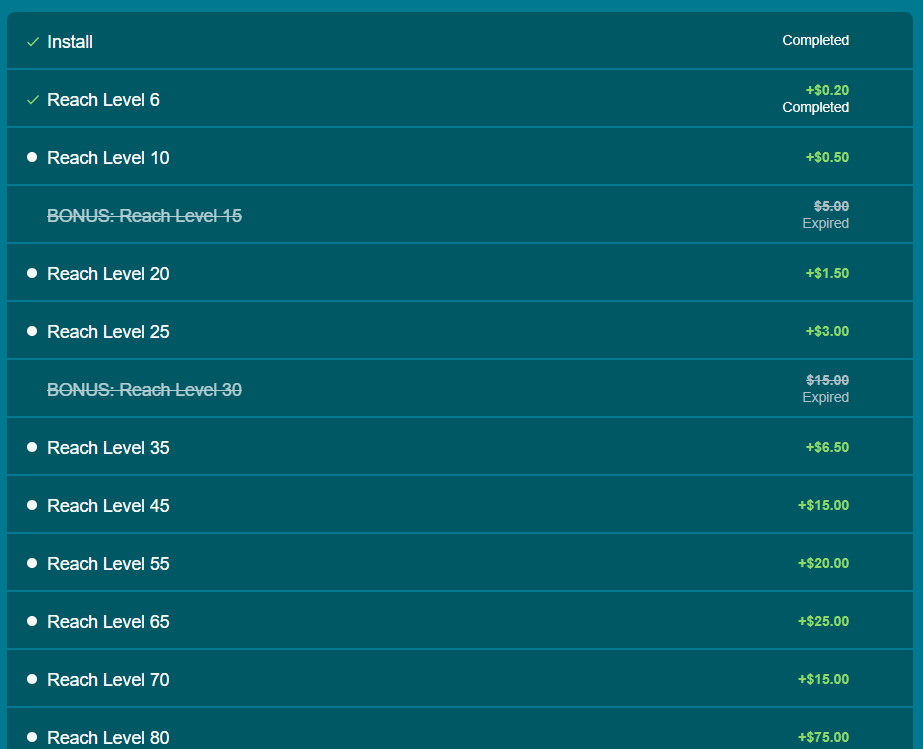 It took too long to make it to level 6 within the deadline but you'll see below that they where you can make more on the bonuses.